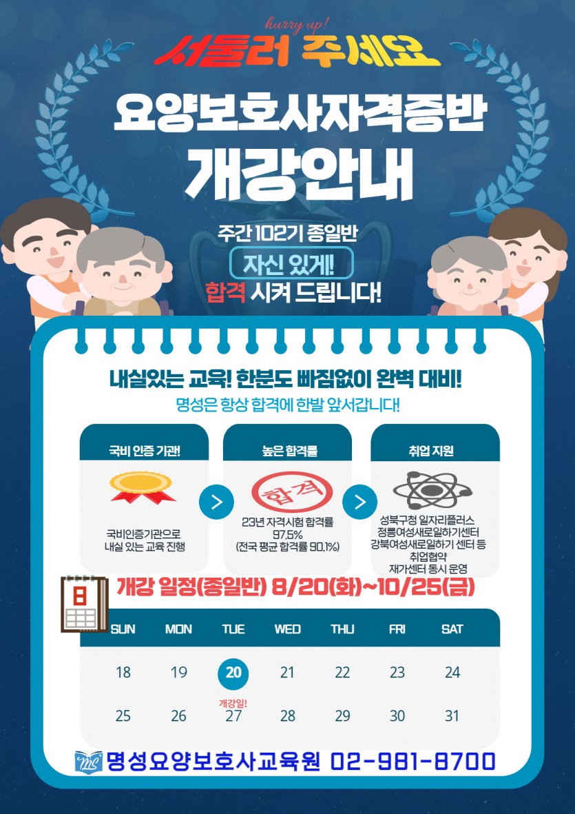 (요양)8월 개강! 요양보호사 자격 취득과정 모집